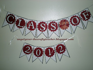 Here is a graduation banner I made using the Art Philosophy cartridge from Close to My Heart. I used ribbon to affix the letters together.